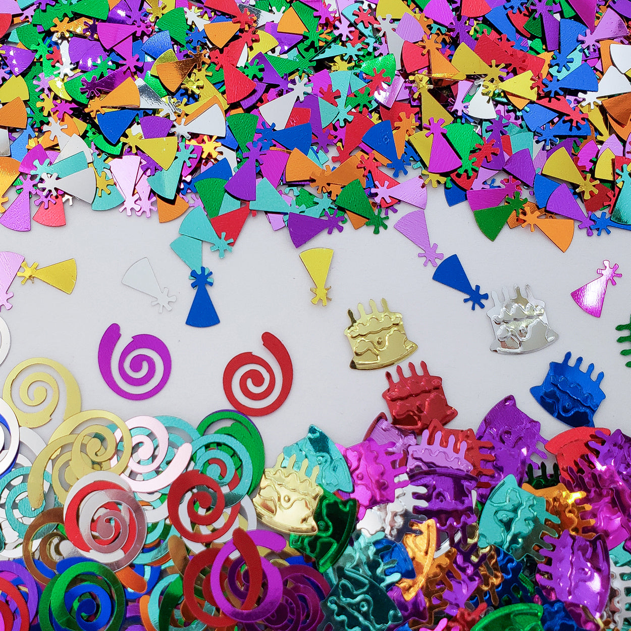 ConfettiThreePack - Birthday - Birthday Cakes, Party Hats, Curly Qs