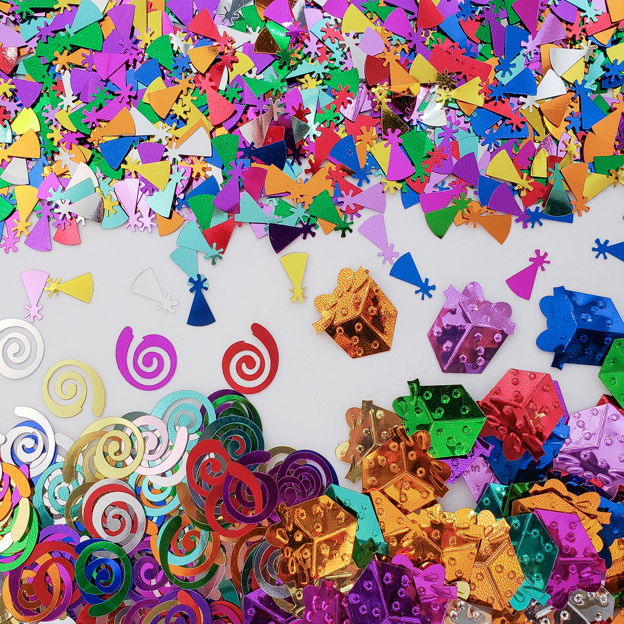 ConfettiThreePack - Birthday - Gift Box, Curly Qs, Party Hats