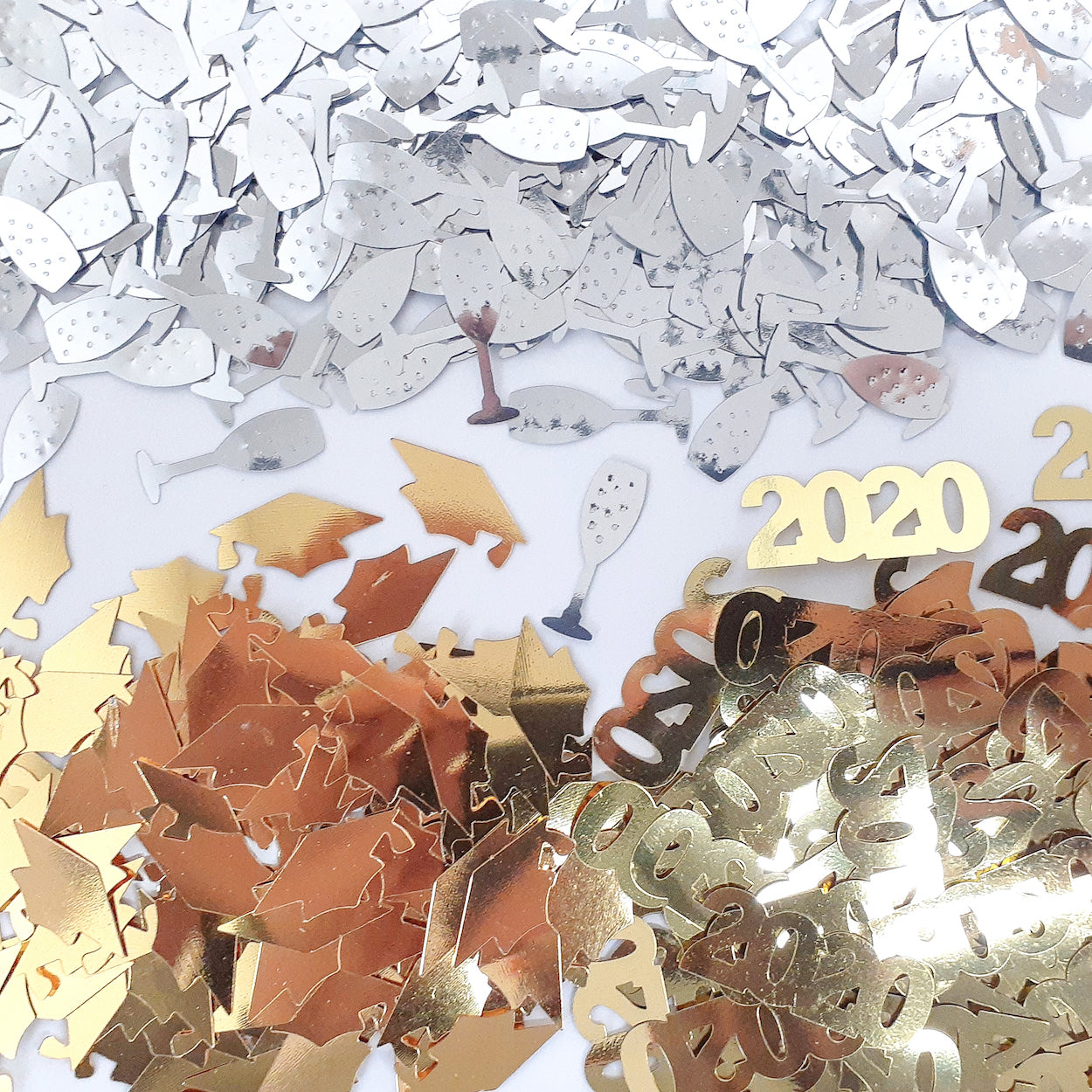 SHAPES INCLUDE: Grad Cap, Year 2026 and Champagne Flute ENOUGH FOR: 3 to 6 Party Tables or 9 to 21 Invites. SHAPE SIZE: Varies; WEIGHT: 1.5 oz. (42 grams)