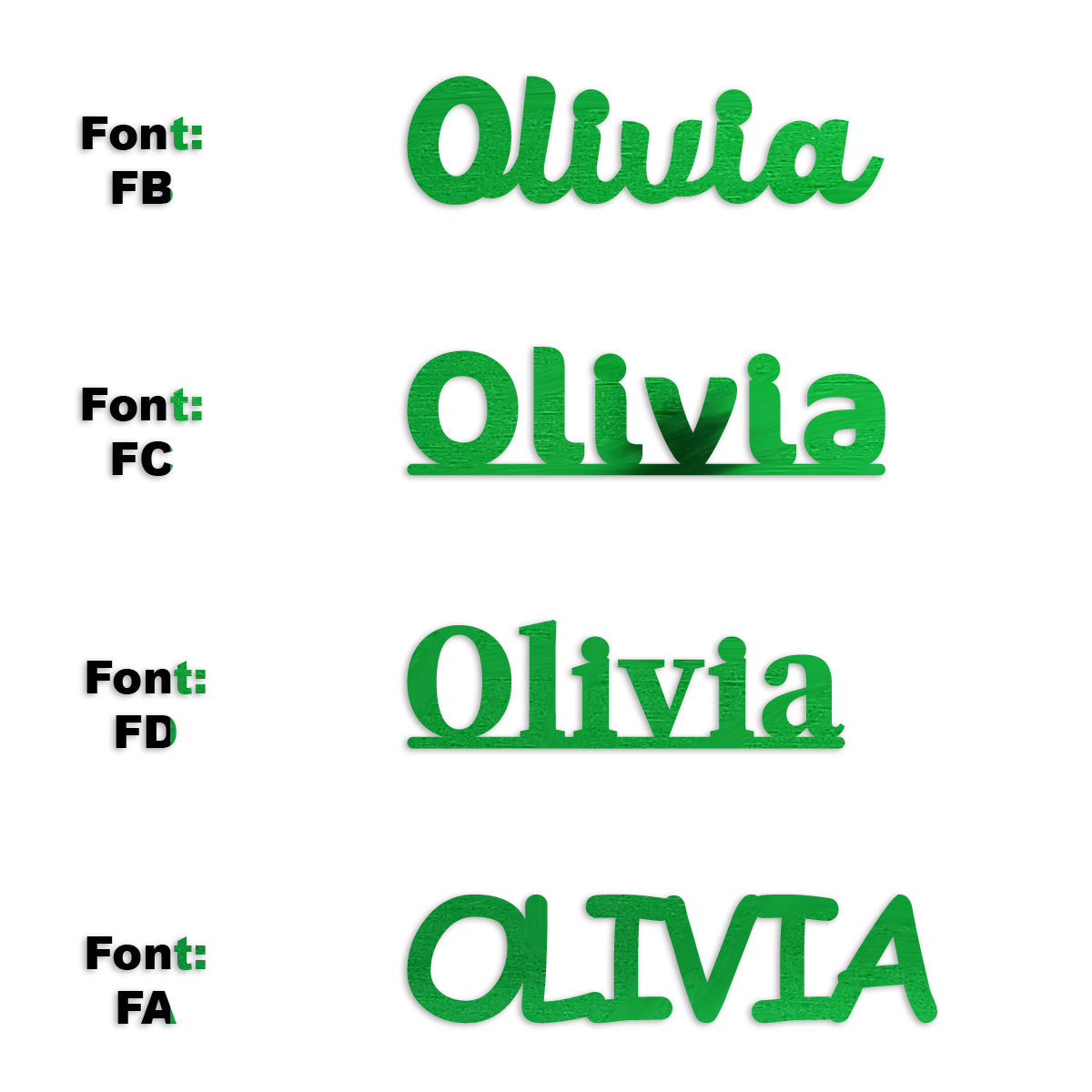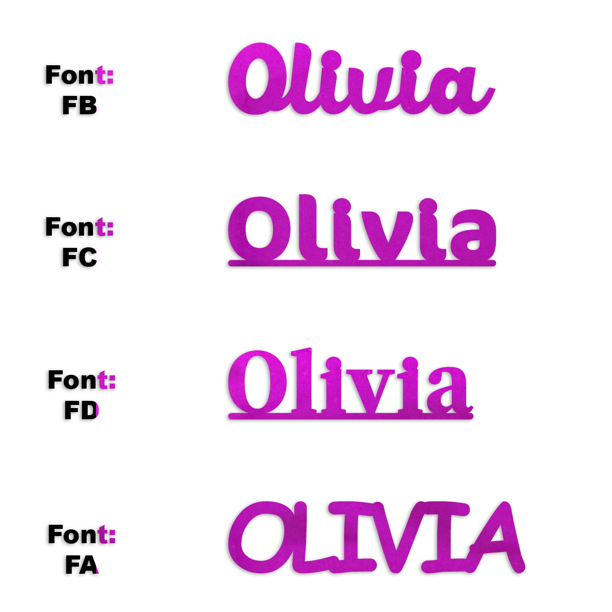 Comes in Metallic or Paper, Heights at 1/2", 3/4" and 1 inch. We Cut-To-Order in Half, Full, Double Sheets. Piece Count Here Our Charts are Here and our Girls Name QUICK List is Here. Have another Child, need a different Name ? Click Here